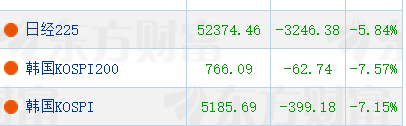 韩国综合指数跌超7%, 三星电子、SK海力士均跌超7%,现代摩比斯、三星物产、SK SQUARE、 现代汽车等跌超9%。